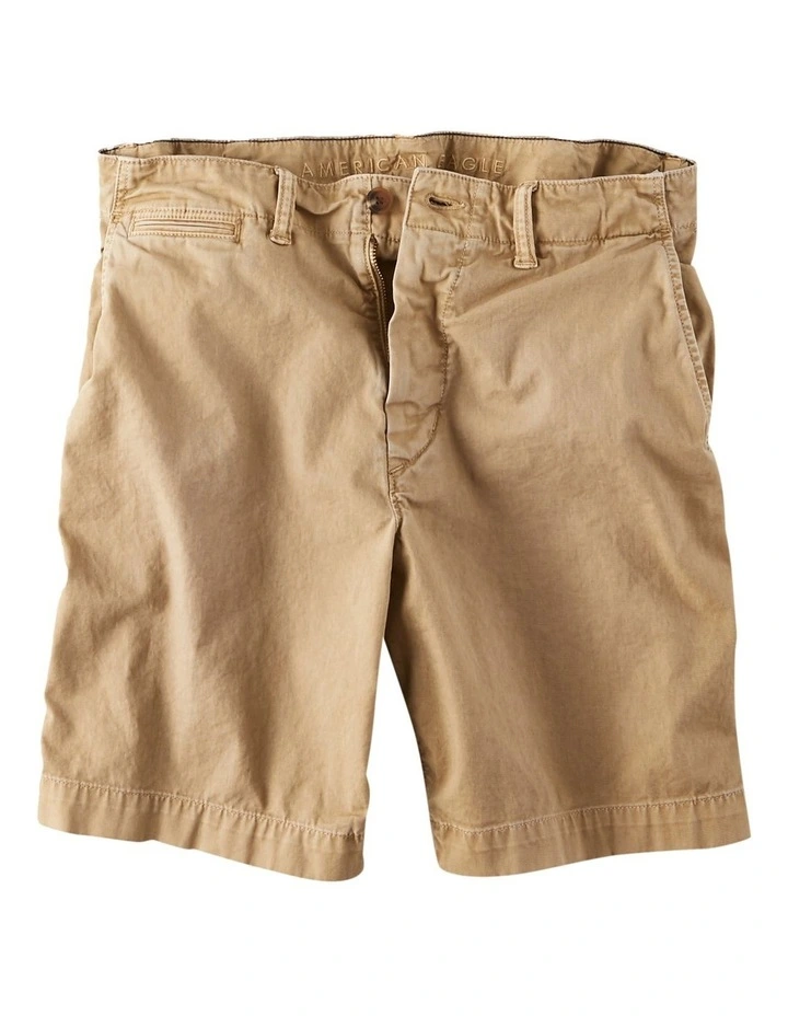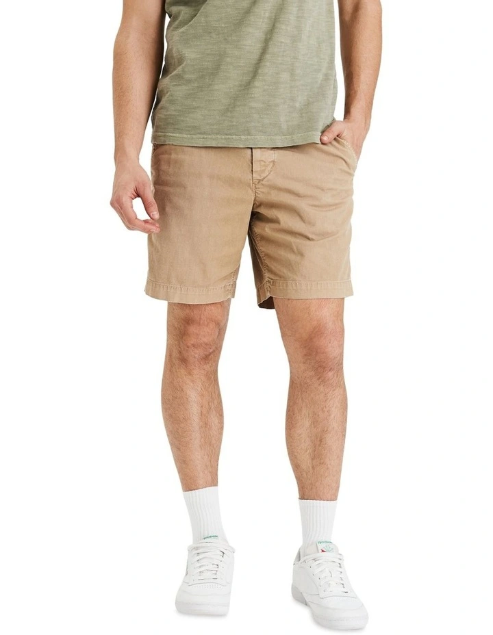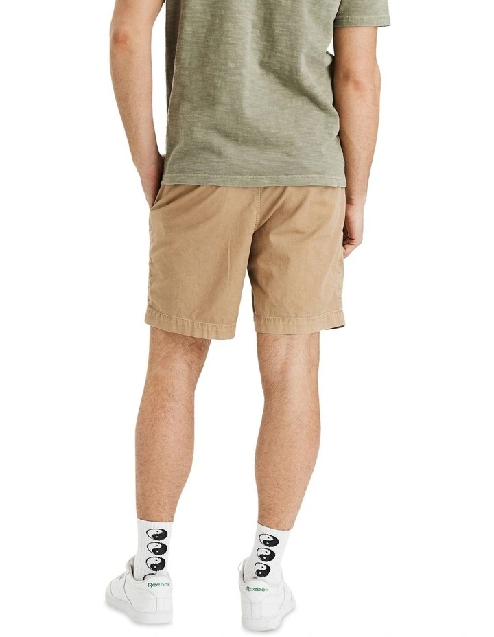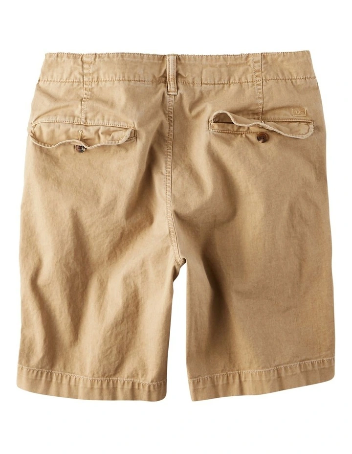 A laid-back, comfortable fit. Hits just above the knee.