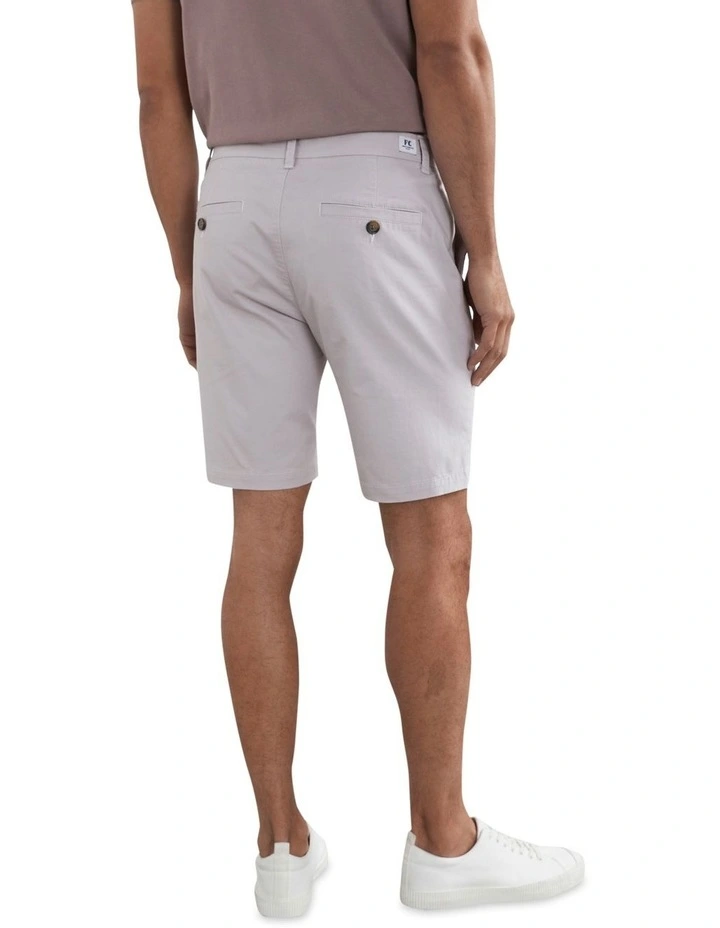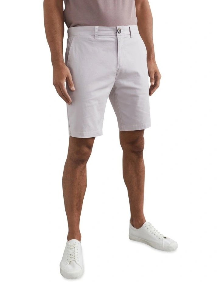 Our Slim Chino Short is a timeless and classic style. Updated for this season with a new wash technique, branded tort buttons on the front closure and on the back pockets. These shorts are a great slim fit, with front and back pockets and just the right amount of stretch. Wear with our Stripe Resort Polo and Liam Leather Sneaker. Our model is 185cm tall and wears a size 32.