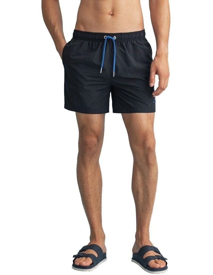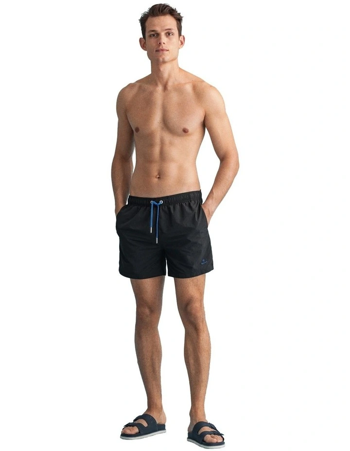 The Classic Fit Basic Swim Shorts sport a shorter length and feature an elastic waistband with a contrast-colourΒ drawstring. These easy-to-wear and classic swim shorts have a mesh inner pant and our signature GANT Diamond G embroidery at the left bottom leg.