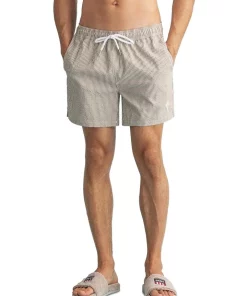 Crafted in recycled polyester, the Short Cut Logo Lightweight Swim Shorts sport a shorter length, an elastic waistband with a contrast-colour drawstring, and a mesh inner pant. They also feature a white GANT logotype on the side for a bold, sporty look.