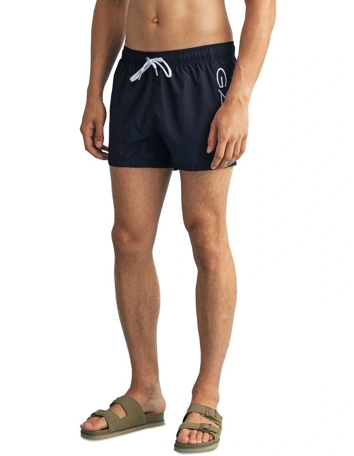 Crafted in recycled polyester, the Short Cut Logo Lightweight Swim Shorts sport a shorter length, an elastic waistband with a contrast-colour drawstring, and a mesh inner pant. They also feature a white GANT logotype on the side for a bold, sporty look.