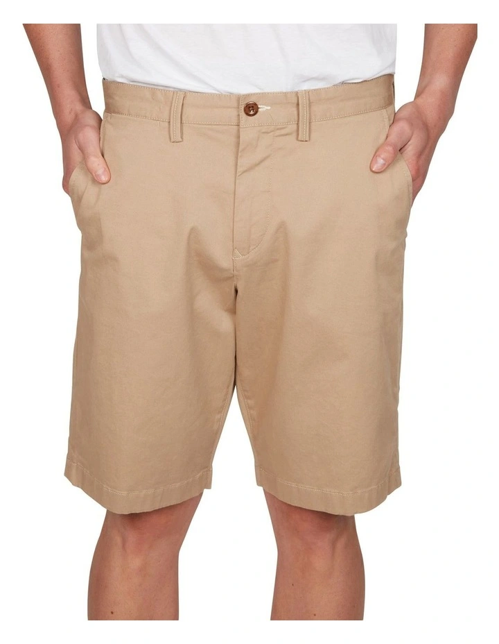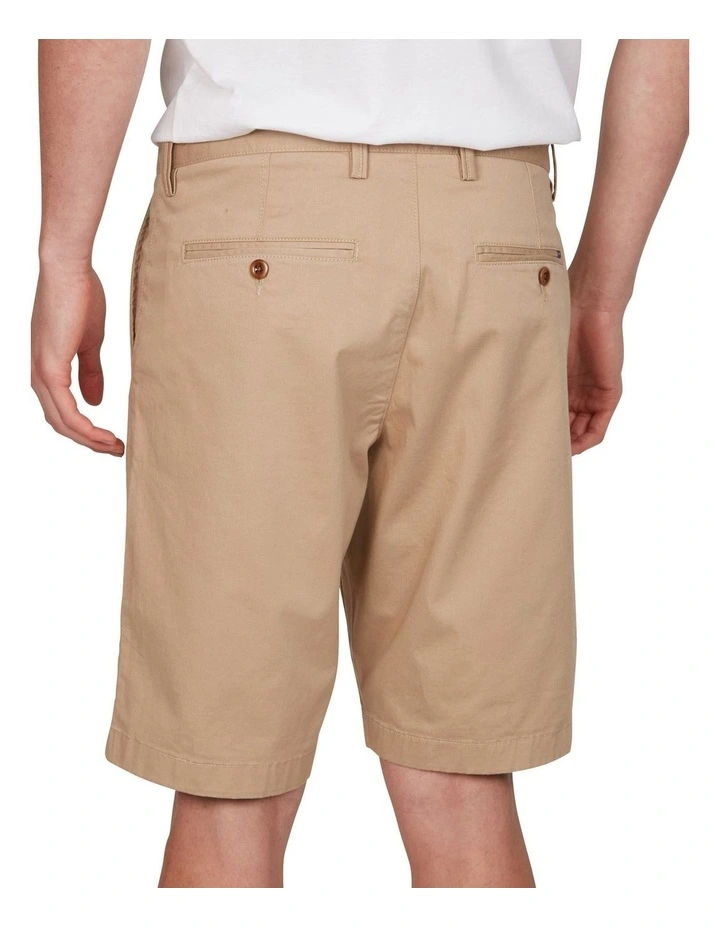 Our Relaxed Fit Twill Shorts, in a stretch cotton-blend, feature our relaxed fit (normal on the waist, relaxed on the leg). These crisp chino shorts have a dark blue chambray lining with cream herringbone accents, as a nod to our proud shirtmaking heritage, as well as covered side seams inside the bottom leg for a preppy look when you roll up your pant leg.