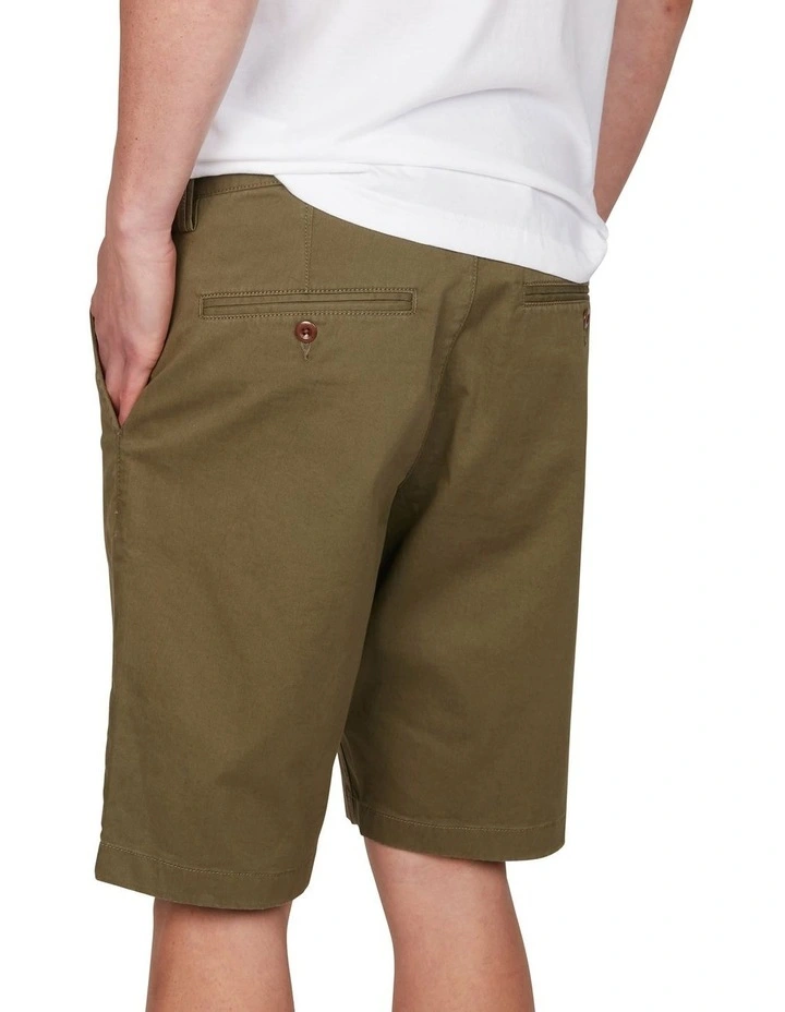 Our Relaxed Fit Twill Shorts, in a stretch cotton-blend, feature our relaxed fit (normal on the waist, relaxed on the leg). These crisp chino shorts have a dark blue chambray lining with cream herringbone accents, as a nod to our proud shirtmaking heritage, as well as covered side seams inside the bottom leg for a preppy look when you roll up your pant leg.