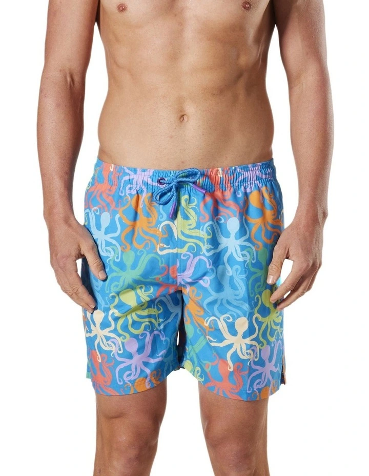 These stylish Mens Bright Octopus Swim Shorts printed swim shorts are perfect for summer. Crafted from 100% Recycled Repreve Polyester and featuring an all over design, fast-drying properties, mid-length leg, covered elastic waist with drawstring, two side pockets and a single back pocket with Velcro. These shorts are ideal for hot days by the pool or at the beach.
