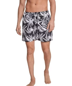 New π Urban Classics Palm Pattern Swim Shorts In Black π
