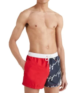Sign yourself at the beach the Tommy Hilfiger way with these bold, colour-blocked swim shorts in a shorter length and featuring polygiene technology.