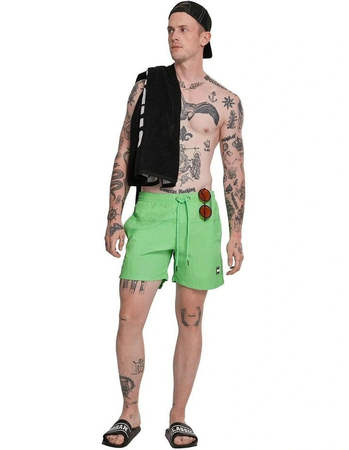 The Mens Block Swim Shorts are a versatile and lightweight summer staple. They have been designed to take you from swimming at the beach, to strolling through town. Their engineered blend of nylon and taslon creates a highly durable and quick-drying material, making these shorts the perfect option for on-the-go activities.